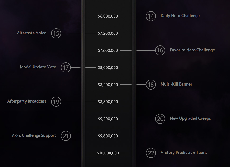 Un dato curioso es que en la edición del año pasado del International se repartieron 2.874.407$ entre los 8 mejores del torneo y este año si se reparte de igual manera, el ganador ya obtendría una cifra superior a los 3.031.377$