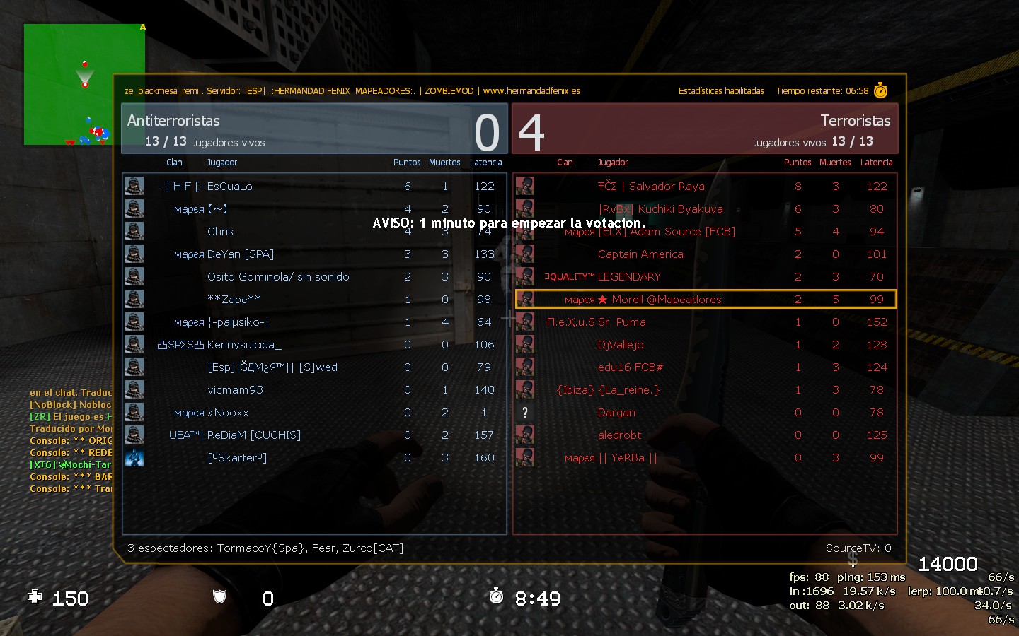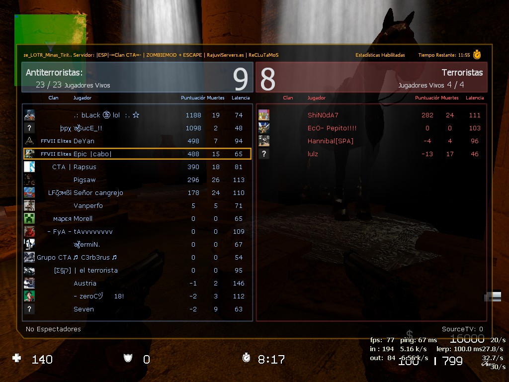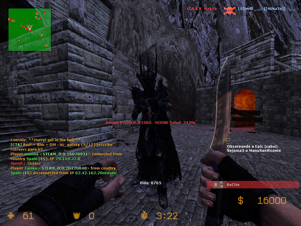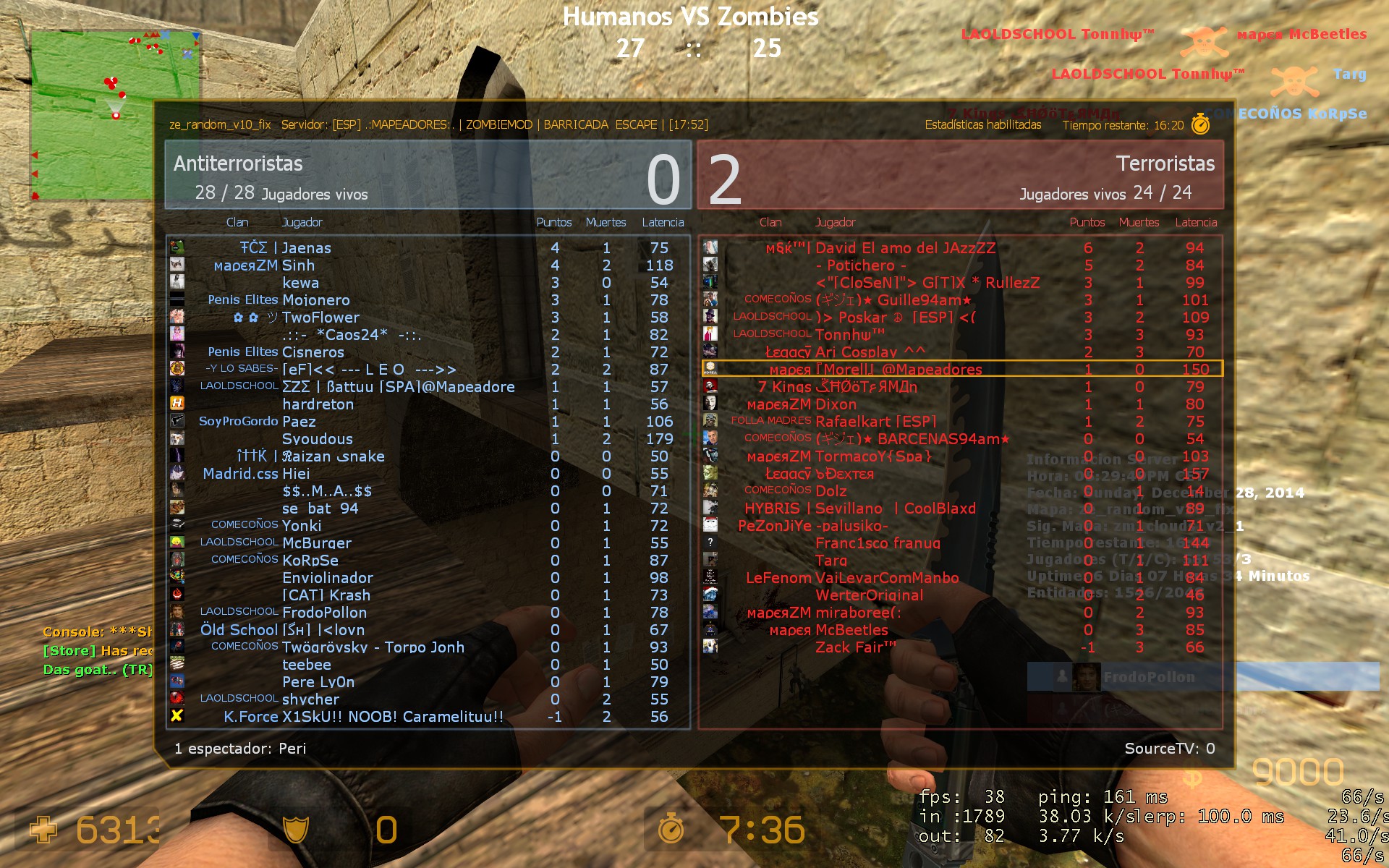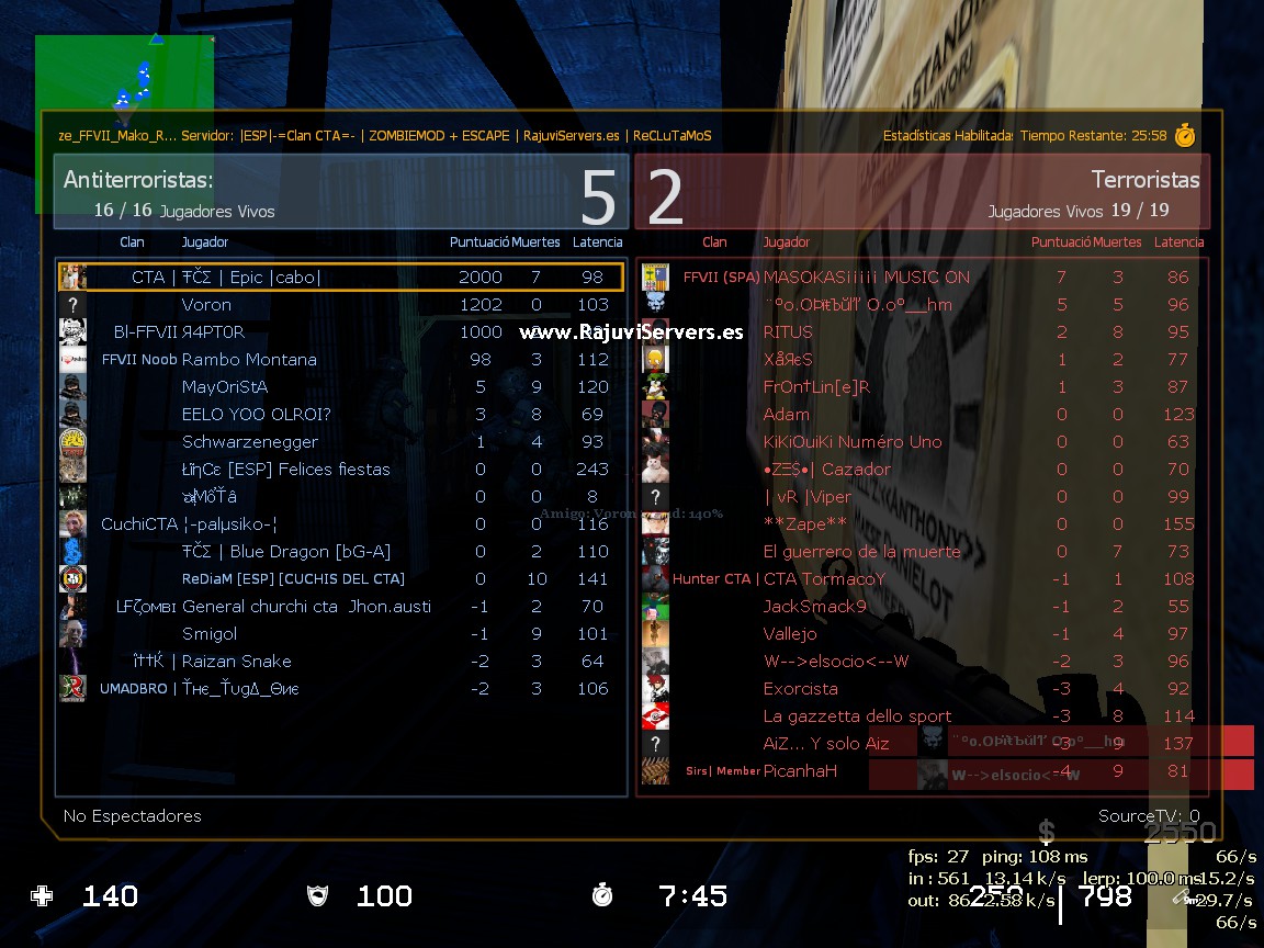 Cuando entré por primera vez en el servidor tras haber estado buscando durante unos días servidores de zombies de habla hispana. Lo primero que oí al entrar fue “TU MADRE LA PUTA”.MC