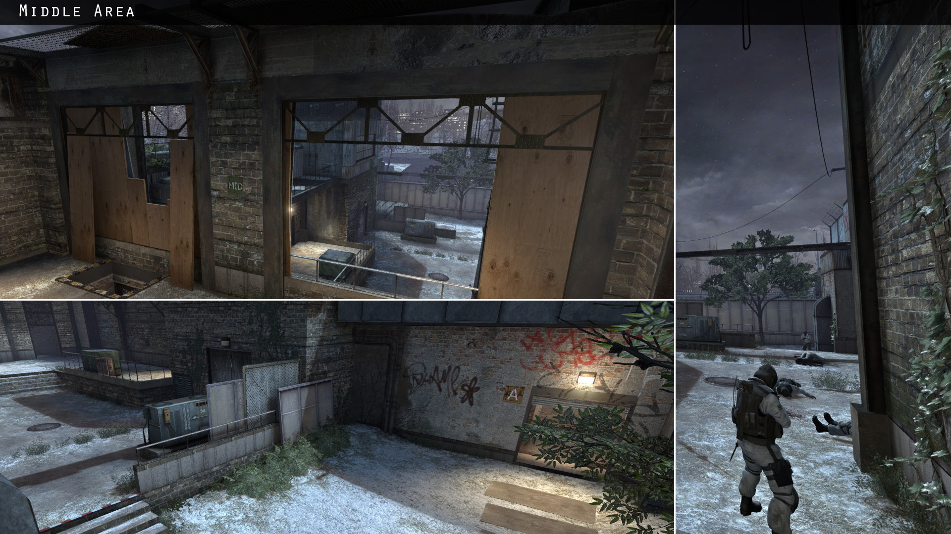 -Por lo que veo en el radar debería repasar el canal alpha para que se vea el borde blanco, se me había pasado (he hecho ya un montón de versiones del radar y debía ser el alpha de la anterior). -La escalera es un prop de Valve y no hay más pequeño (sino lo hubiese puesto). Lo puse en el suelo y en diagonal para dirigir a los jugadores hacia la escalera real. -No hay sonido en la caldera de rampa por la cercanía con los CTs que pueden bajar a corta y andar cerca, no quería que molestase a los jugadores o diese ventaja a los CT. -El humo “desplazado” lo cambie de dirección porque antes bloqueaba visión. Lo repasaré, no vaya a ser que salga de la nada, creí que estaba bien.