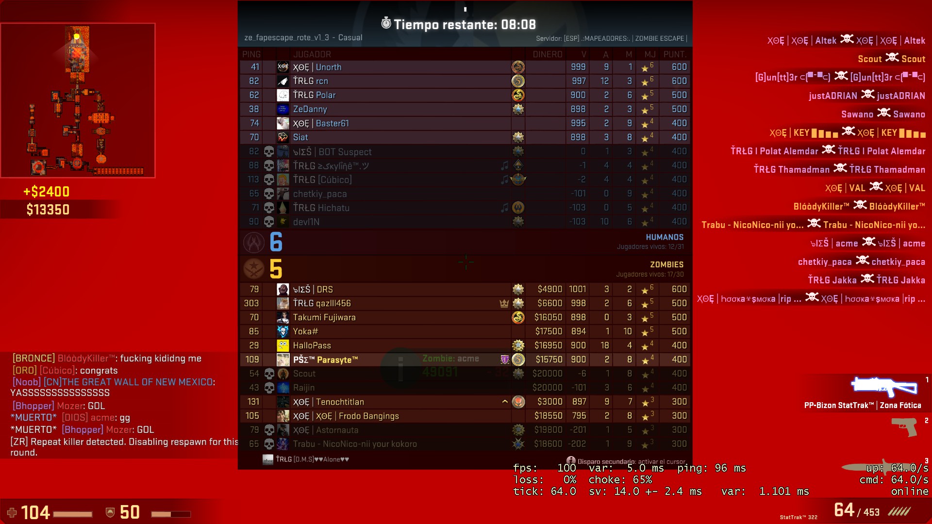 Prize for the winners of the last level: Normal fapescape level 4 boss model (duration: until next event) You must post a proof of your win and your STEAM_ID. IT’S OBLIGATORY TO PRESS IN “CONFIRMAR ASISTENCIA” BEFORE EVENT TO CLAIM THE SKIN.