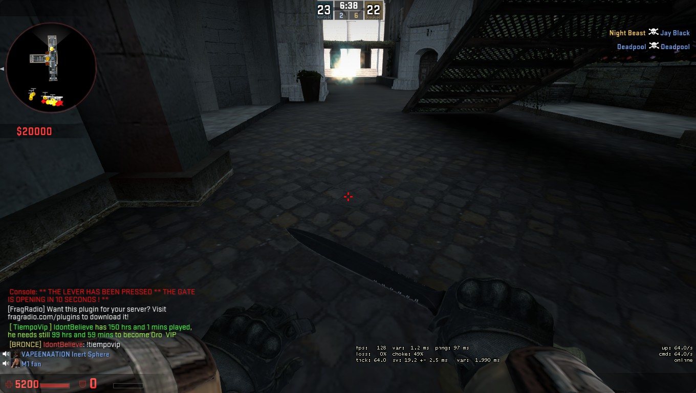 Buenas Acabo de jugar 50 horas y solicito VIP Bronce Steam Id STEAM_1:0:19140284 Captura http://steamcommunity.com/sharedfiles/filedetails/?id=942660775